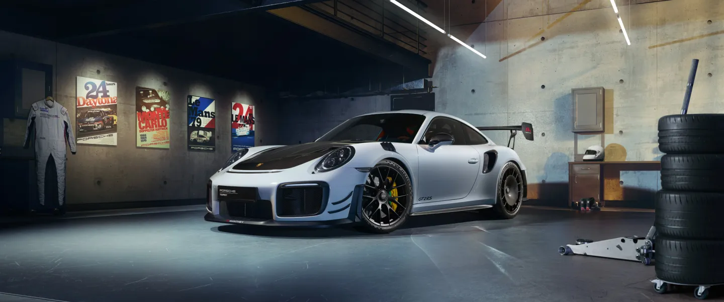 The Manthey kit for the 911 GT2 RS (Type 991 II) was developed in close cooperation between the Porsche Development Centre in Weissach and Manthey-Racing GmbH. Thanks to coordinated chassis, aerodynamic and brake components as well as the lightweight GT2 RS magnesium wheels, it was possible to match the breathtaking performance of the 991 GT2 RS even more precisely to the requirements of track days and tourist drives.